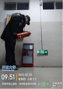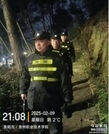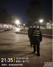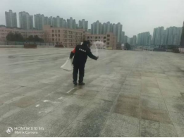 观山湖校区:路面结冰,安保人员第一时间赶去撒盐,避免人员摔倒。