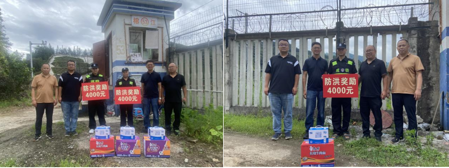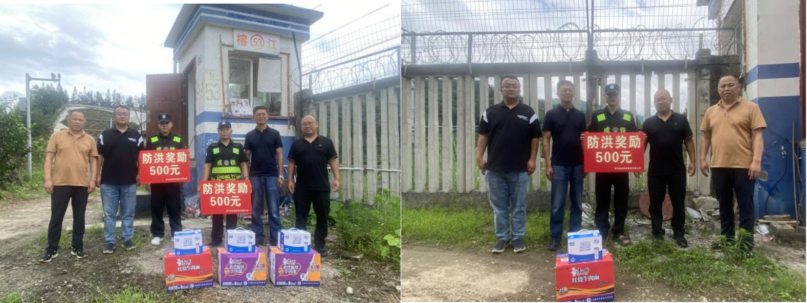 2025年6月27日下午,高铁工务段领导与公司领导及相关人员,专程前往贵广客专沿线岗亭,对杨光得、钟寿銮、周鹏3名巡防队员进行亲切慰问。高铁工务段给予每人4000元的奖励,公司给予每人500元的奖励。