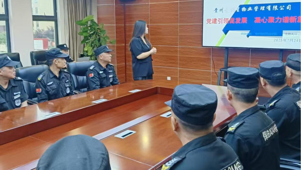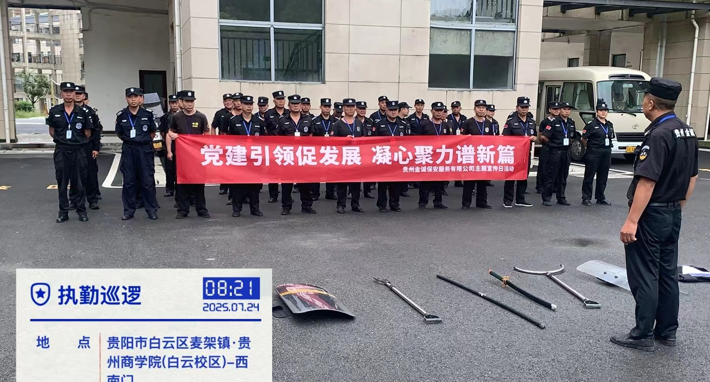 为深入贯彻落实《关于组织开展“党建引领促发展,凝心聚力谱新篇”保安行业主题宣传活动的通知》精神,进一步加强党建引领作用,推动保安行业高质量发展,贵州金诚保安服务有限公司2025年7月24日组织开展“党建引领促发展,凝心聚力谱新篇”主题宣传活动。