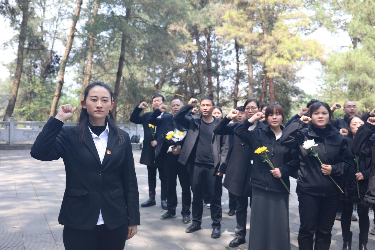 在纪念碑前,公司党支部书记带领全体党员,面向鲜红的党旗,重温入党誓词。誓言铿锵有力,响彻陵园,表达了党员们对党的忠诚和为共产主义事业奋斗终身的坚定决心。入党积极分子和员工代表们也深受感染,更加坚定了向党的组织靠拢、为人民服务的信念。