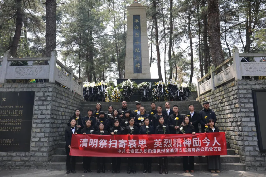 为弘扬爱国主义精神,传承红色基因,强化公司员工的社会责任感和使命感,在清明节来临之际,中共云岩区头桥街道贵州金诚保安服务有限公司党支部组织开展了清明节前祭扫活动。此次活动于4月3日在观山湖区英雄纪念碑烈士陵园举行,公司党员、入党积极分子及部分员工代表共计26人参与,共同表示对先烈的追思和敬意。