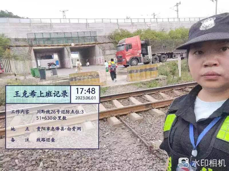 6月4日我司川黔线巡防员敖大群、开阳支线刘艳兵在巡防点劝离行人下道并宣传。