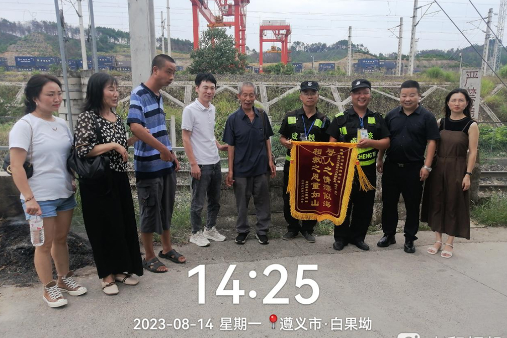 2023年8月14日,唐太文带着锦旗来感谢他们。感谢他们不畏夏日的炎热,守护在患者身边,没让患者跨上铁路,保护了精神病患者的生命安全,避免了一起铁路交通事故。