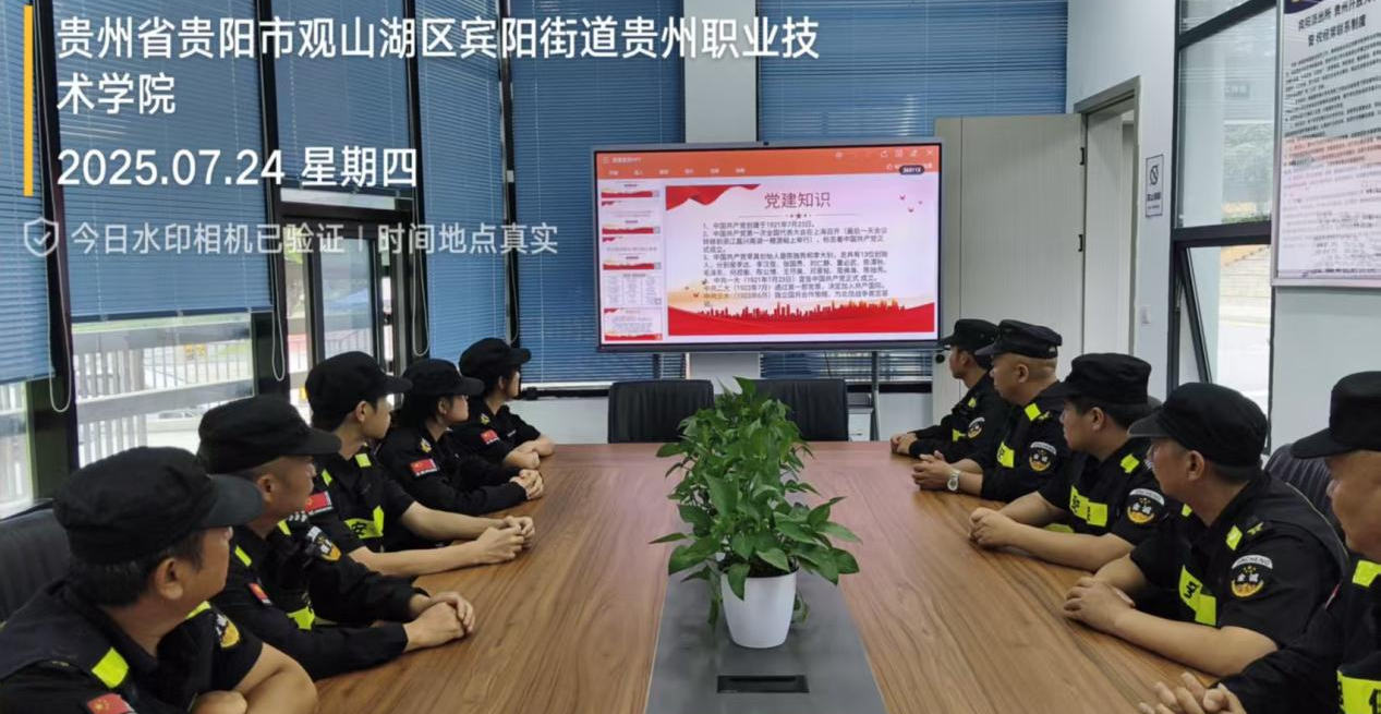为深入贯彻落实《关于组织开展“党建引领促发展,凝心聚力谱新篇”保安行业主题宣传活动的通知》精神,进一步加强党建引领作用,推动保安行业高质量发展,贵州金诚保安服务有限公司2025年7月24日组织开展“党建引领促发展,凝心聚力谱新篇”主题宣传活动。